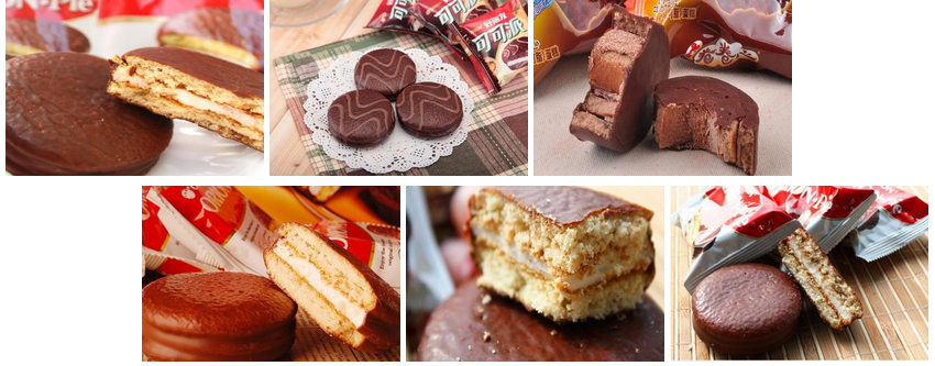 用雞蛋和面粉為主要原料,調(diào)成稠漿狀,經(jīng)過注料、焙烤、冷卻、翻餅、夾心等工序,制成噴香美味的蛋黃派、時尚派、休閑派、草莓派等系列夾心蛋糕,深受消費(fèi)者青睞。